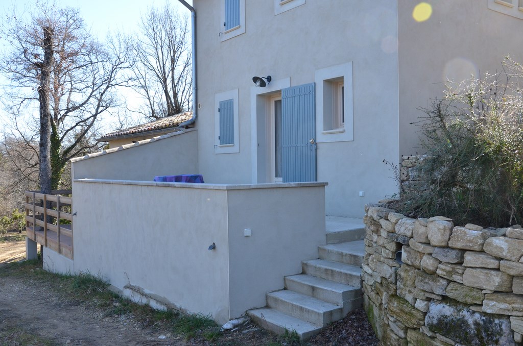 Cette location bénéficie de 2 belles terrasses : l'une au sud pour profiter pleinement du soleil et de la belle vue sur le Luberon, l'autre au Nord-ouest, très appréciée en été. Un jardinet engazonné prolonge la terrasse sud.