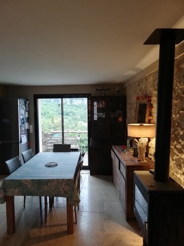 L'entrée s'ouvre vers le salon -salle à manger attenant à une cusine ouverte. Une grande baie vitrée donne accès à la terrasse pratique pour prendre vos repas.