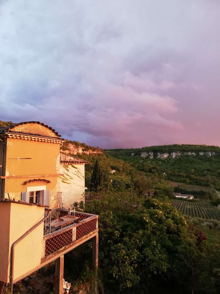 C'est une petite maison individuelle sur deux étages avec une très grande terrasse qui domine toute la vallée d'APT. La vue s'étend pratiquement à l'infini vers l'ouest et permet d'assister à de magnifiques couchers de soleil. Eté comme hiver, l'ensoleillement est total l'après midi.