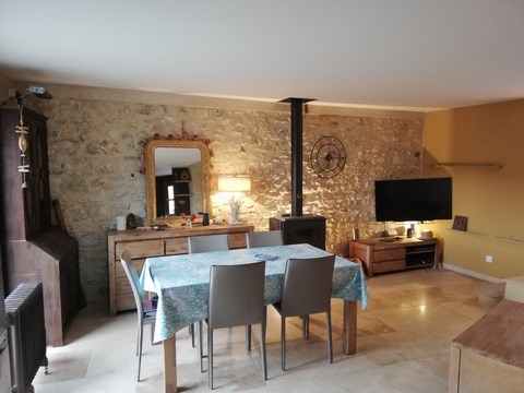 Coin séjour : 1 table, 6 chaises, 1 buffet.